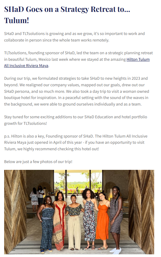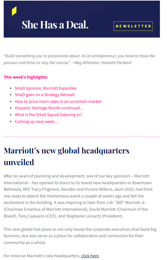 She Has a Deal was founded to create pathways to hotel ownership for women through education, networking, and mentorship.